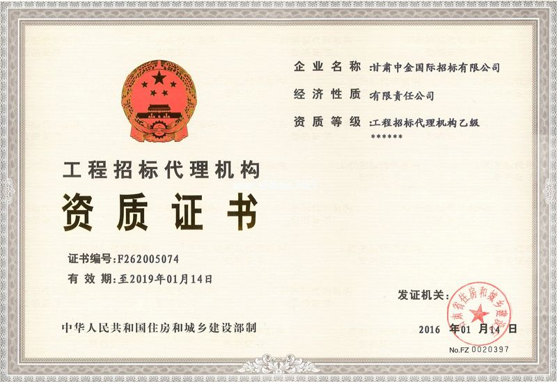 甘肅中金國際招標(biāo)有限公司成立于2011年11月,注冊資金500萬元,于2012年5月取得由省財政廳頒發(fā)的政府采購代理機構(gòu)乙級資質(zhì)(政采代【乙】字第甘022號),并于2013年12月取得由中華人民共和國財政部頒發(fā)的政府采購代理機構(gòu)甲級資質(zhì)(政采代【甲】字第1121號),在2016年1月取得由甘肅省住房和城鄉(xiāng)建設(shè)廳頒發(fā)的工程招標(biāo)代理機構(gòu)乙級資質(zhì)(F262005074);2015年4月取得機電產(chǎn)品國際招標(biāo)代理資質(zhì),僅在短短幾年內(nèi)成為本行業(yè)發(fā)展速度最快的公司之一。 甘肅中金國際招標(biāo)有限公司由海外留學(xué)回國學(xué)生擔(dān)任核心領(lǐng)導(dǎo),公司下設(shè)商務(wù)部、工程部、財務(wù)部及辦公室等業(yè)務(wù)部門,目前公司在職員工50余人,其中本科以上學(xué)歷占50%以上,擁有中高級國家技術(shù)職稱人員為19人。公司地處蘭州市繁華地段,交通非常便捷;辦公環(huán)境優(yōu)良,擁有寬敞明亮的開標(biāo)大廳、評標(biāo)會議室和會客室;計算機網(wǎng)絡(luò)管理辦公系統(tǒng),實現(xiàn)了全方位的辦公自動化;同時,公司擁有一支具有豐富招標(biāo)經(jīng)驗的專業(yè)團隊,憑借過硬的專業(yè)知識、積極主動的服務(wù)意識、科學(xué)嚴(yán)謹(jǐn)?shù)墓ぷ髯黠L(fēng)服務(wù)于省內(nèi)各行政機關(guān)、企事業(yè)單位,在招標(biāo)服務(wù)過程中,我們兢兢業(yè)業(yè),踏實工作,嚴(yán)格遵守國家規(guī)定和程序進行相關(guān)招標(biāo)服務(wù),受到了眾多業(yè)主及投標(biāo)人的一致好評。 中金公司將以高效率、高質(zhì)量及好服務(wù)為各業(yè)主單位和投標(biāo)人提供優(yōu)質(zhì)和專業(yè)的招標(biāo)服務(wù)。